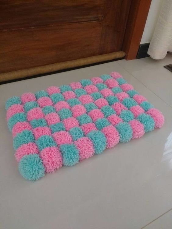 Aposte em tapetes de pompom em ambientes descontraídos.